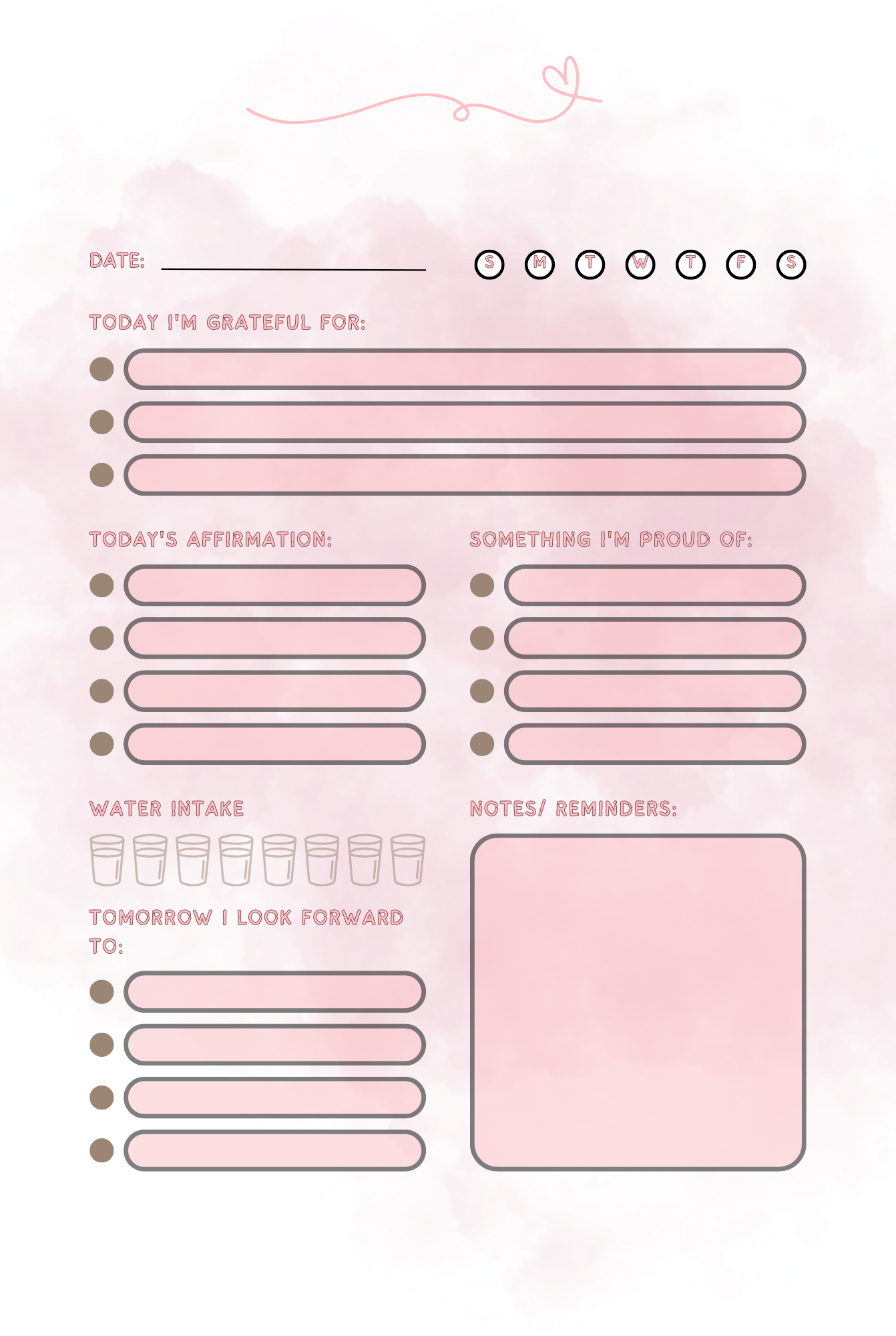 Self-Care Reflection Pages:Â Space to jot down thoughts, dreams, and small wins.