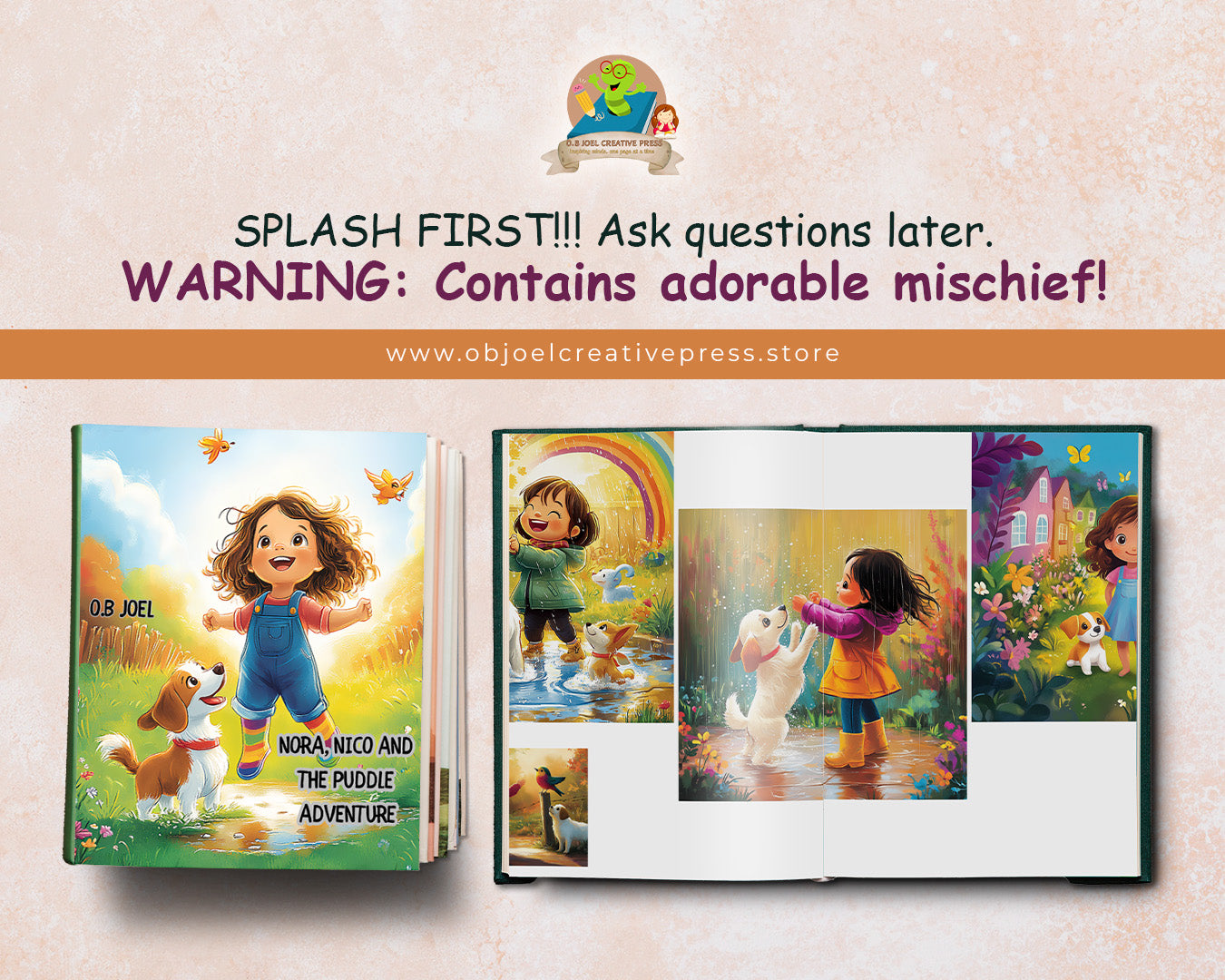 Step into a world of imagination with "Nora, Nico and the Puddle Adventure"— a delightful children's picture book perfect for ages 0–5. Bursting with colour, curiosity, and wonder, this heartwarming story follows two best friends who discover that every puddle holds the key to a magical adventure.