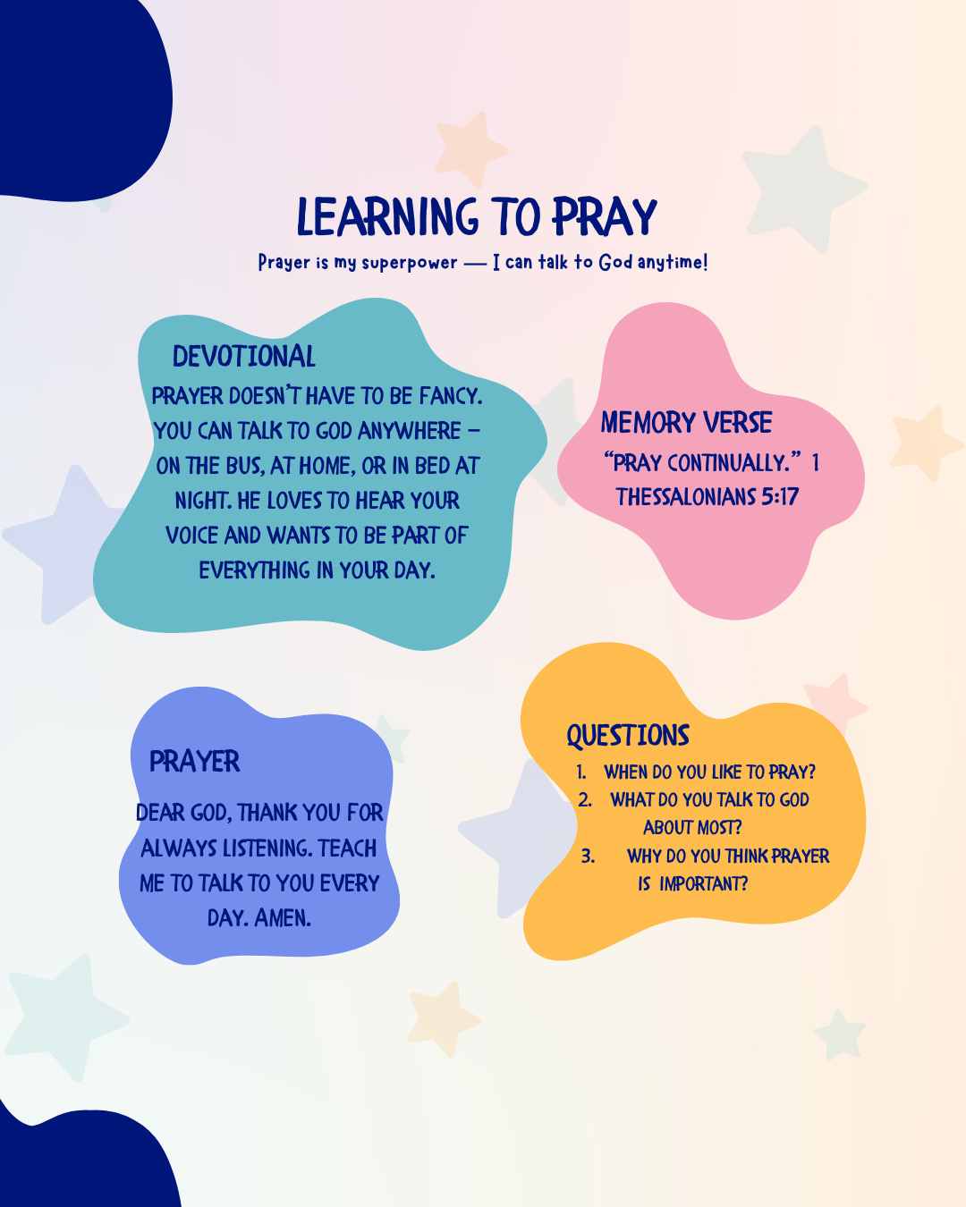 Memory Verses & Prayers — Teach Scripture and encourage personal connection with God.