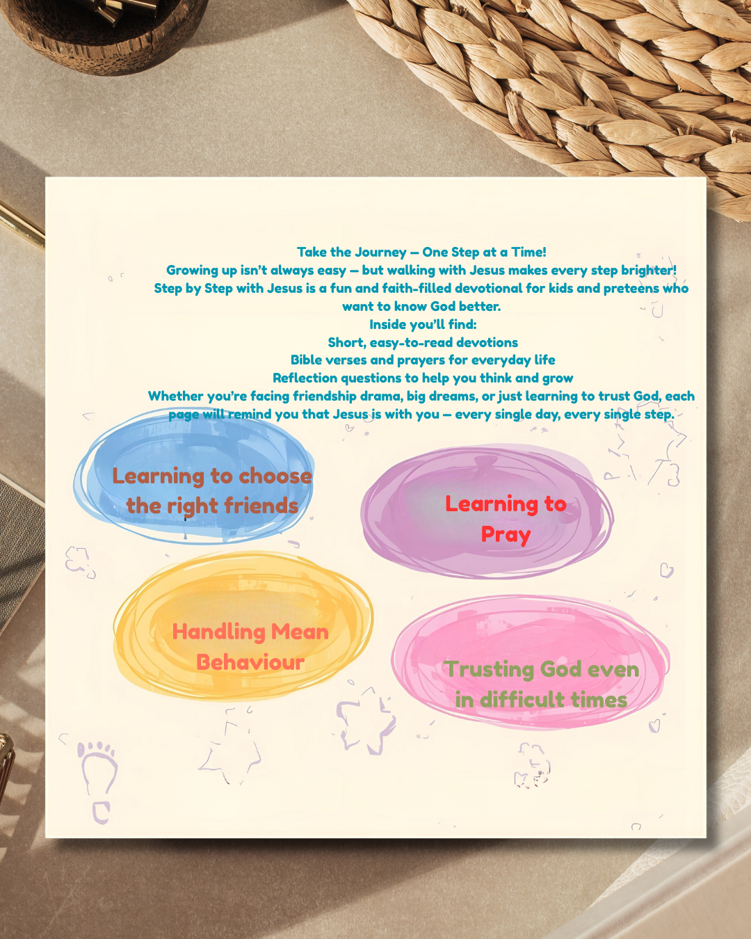That’s why Step by Step with Jesus was created — a daily devotional designed to help children (ages 7–12) walk confidently with God in every part of their lives.