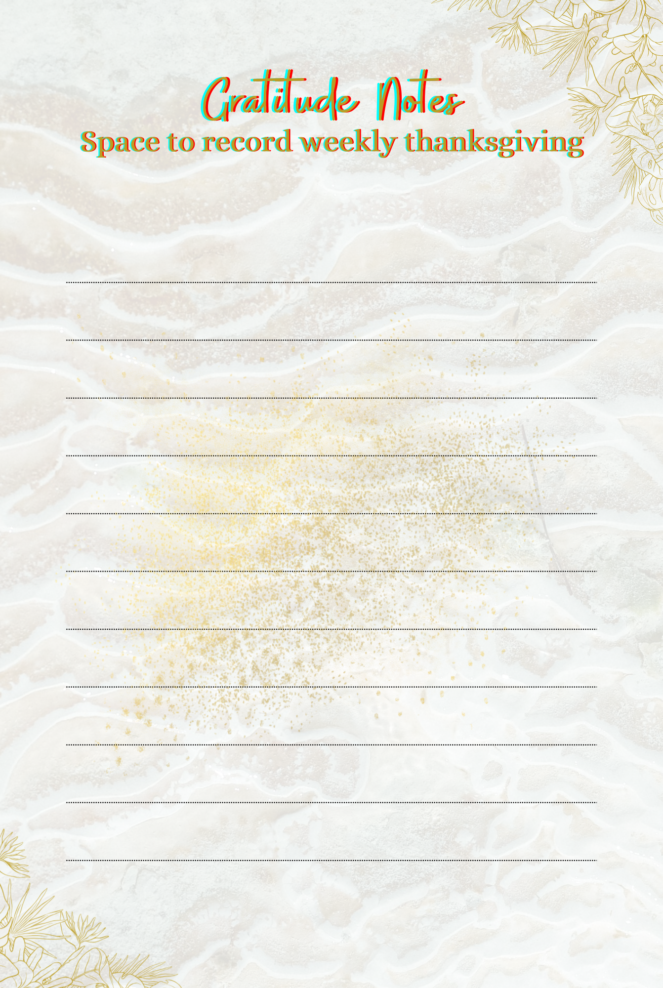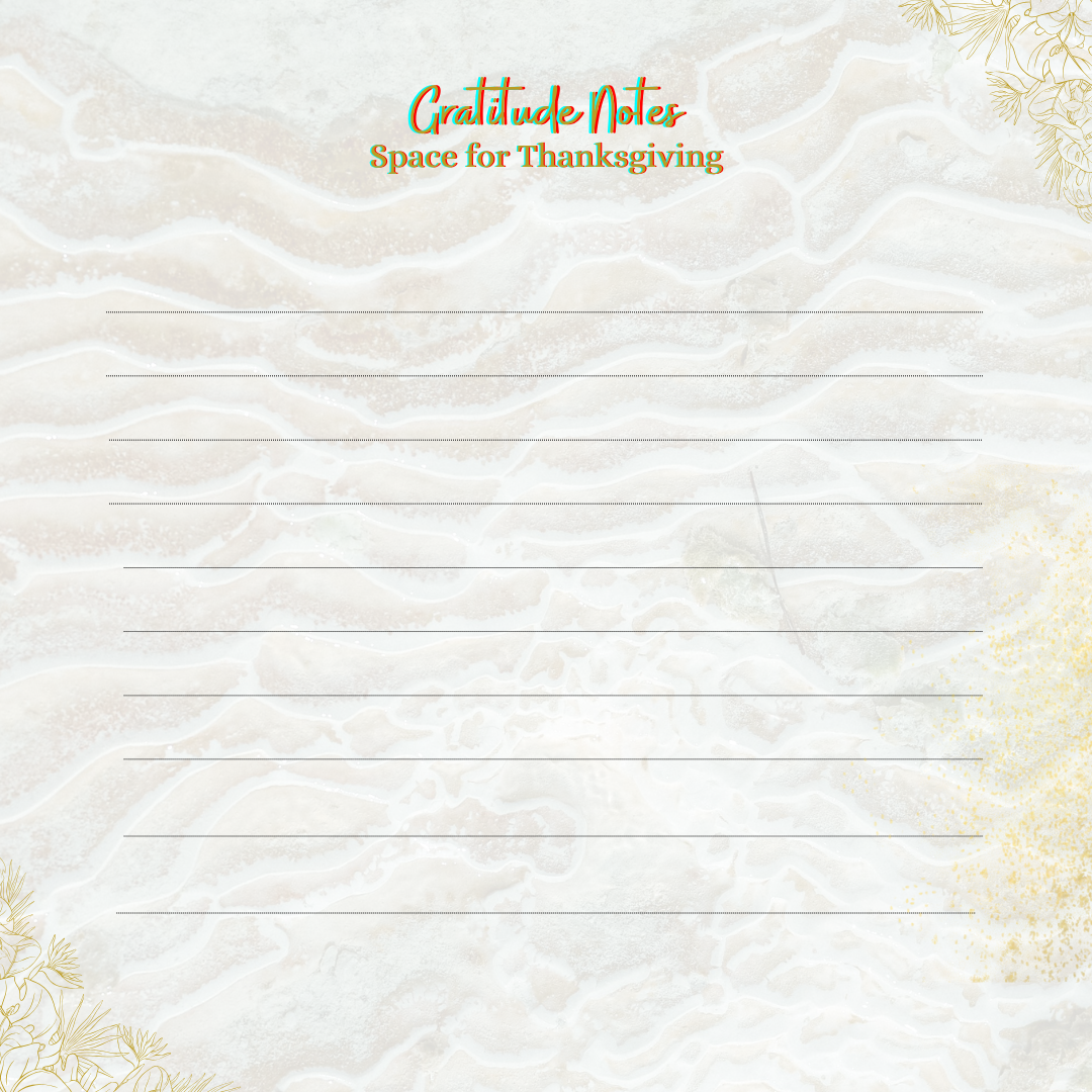 - Reflection questions, Journaling spaces and Gratitude Notes